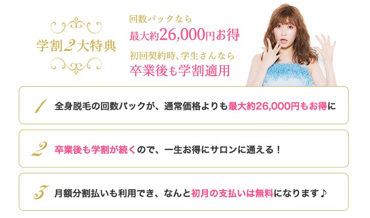 将来脱毛しようと思っているなら、学割で申し込める今本当にオススメだよ♪